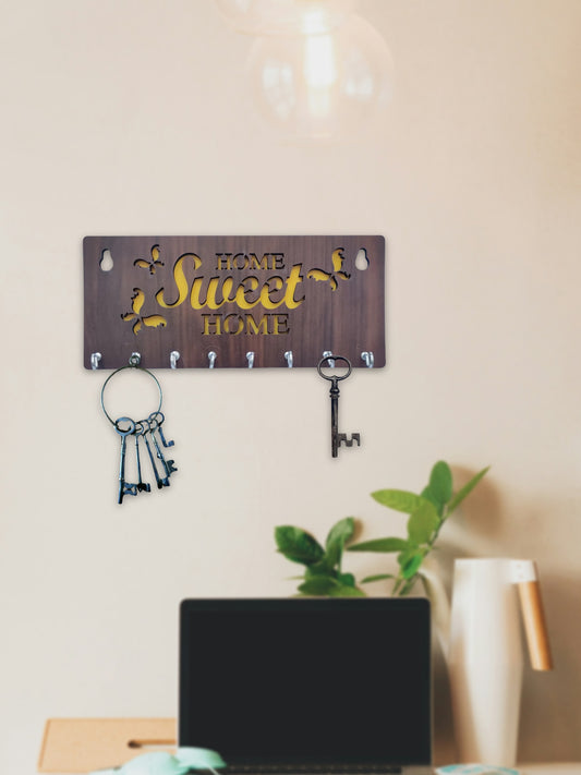 ARTSY® Handcrafted Wooden Key Holder with Hooks : Organize in Style, Pack of 1 Piece, Brown