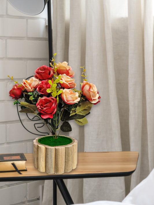 Artificial flowers with wooden pot for decoration for table top, home decor, office decor, rose flowers, artificial plant, craft, gift, combo, pack of 1 piece, Multi, 45 cm height