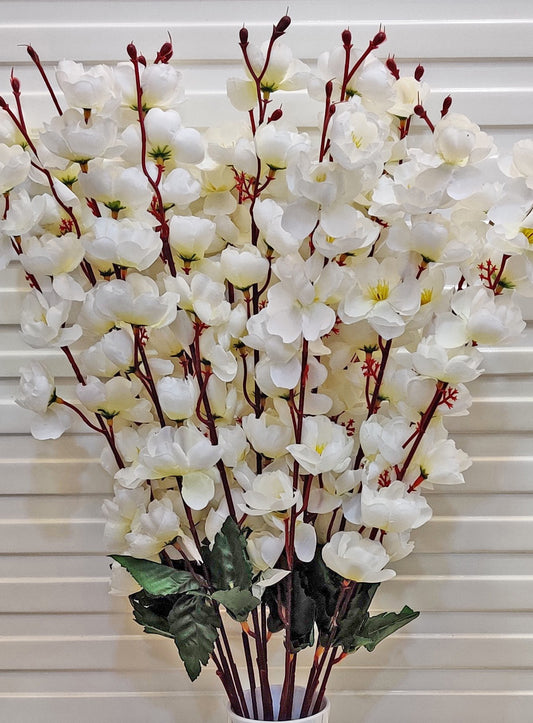 ARTSY® Artificial Flowers For Home Decoration Cherry Blossom Flower Bunch For Vase Office Decor | Without vase | Combo (White Red, Pack of 2 pieces)
