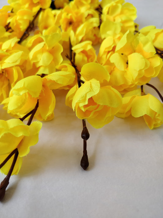 ARTSY® Sunny Yellow Artificial Cherry Blossom Flower Bunch - Radiant Floral Beauty For Home decoration, Office Decor, Vase Filler, Without Vase, 55 CM Long