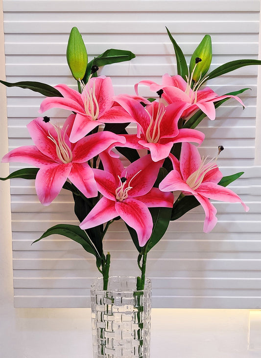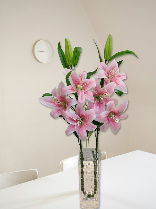 Enchanting Pink Artificial Lily Flower Stick: Timeless Elegance in Every Detail For Home Decor, Office Decor, Vae Filler, Gifting and many more, 3 Big flowers, 100 CM Long