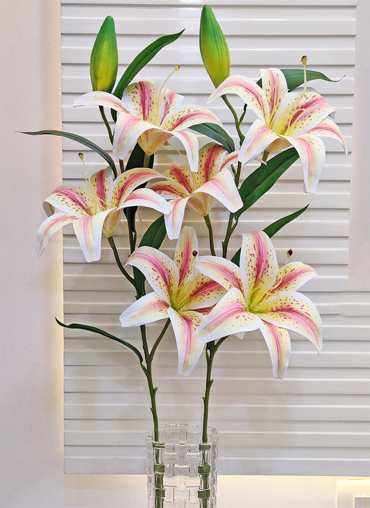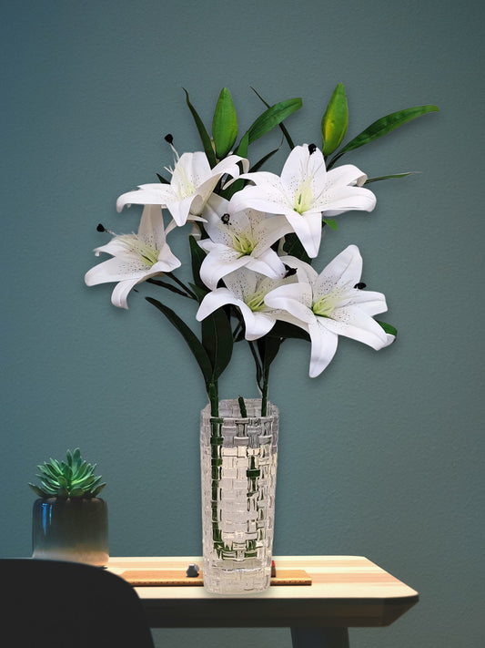 ARTSY® Realistic Artificial White Lily Flower Bunch - Lifelike Decor for Home or Office Home Decor, Office Decor, Vae Filler, Gifting and many more, 3 Big flowers, 100 CM Long
