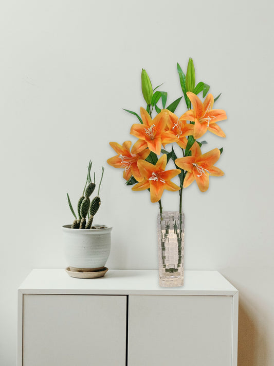 ARTSY Artificial Lily Flower Stick Orange: Timeless Elegance in Every Detail For Home Decor, Office Decor, Vae Filler, Gifting and many more, 3 Big flowers, 100 CM Long