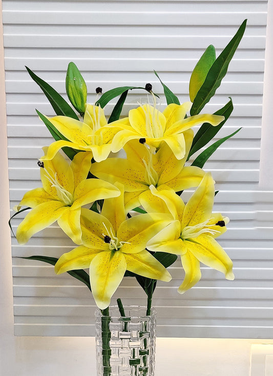 ARTSY® Sunny Splendor: Artificial Lily Flowers Stick - Vibrant Yellow Blooms For Home Decoration, Vase Filler, Office Décor, Gifting, DIY Craft, Pack of 1 Piece