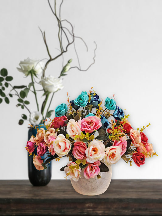 ARTSY® artificial flower for decoration, rose flower bunch, pack of 4 pieces, Assorted