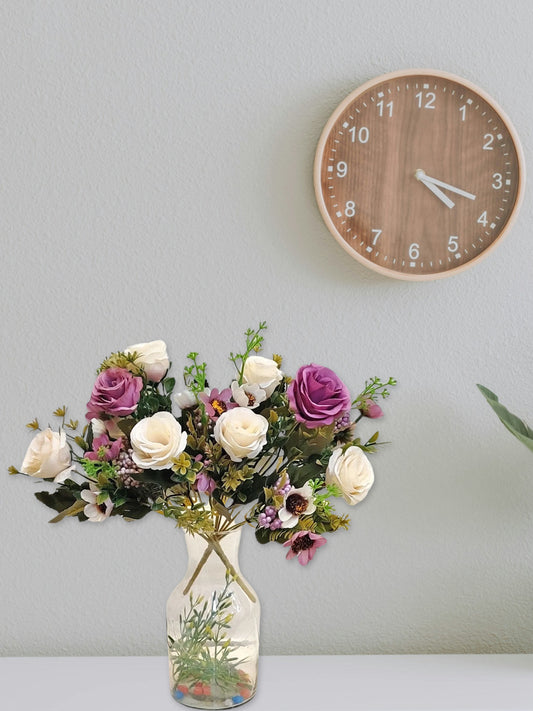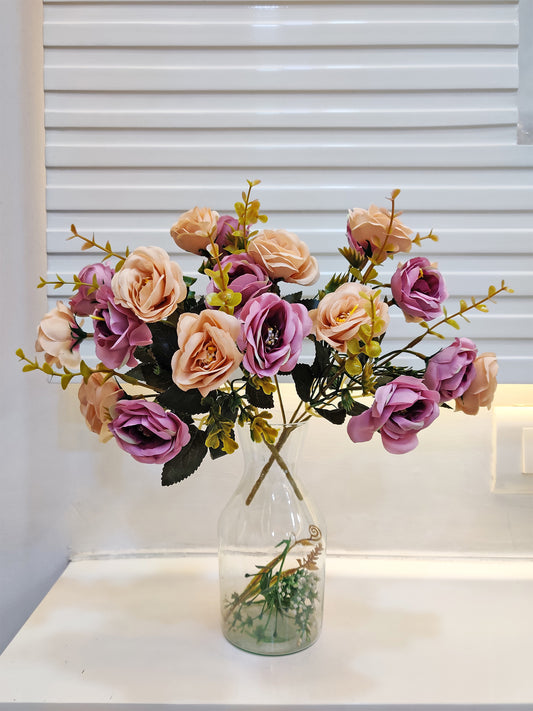 ARTSY® artificial flower for decoration, rose flower bunch, pack of 2 pieces, white purple