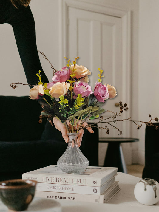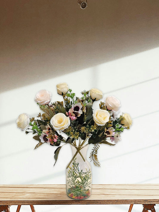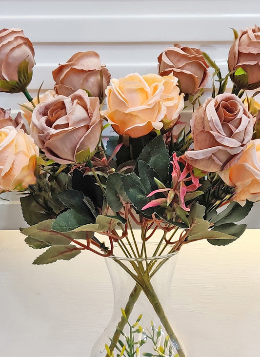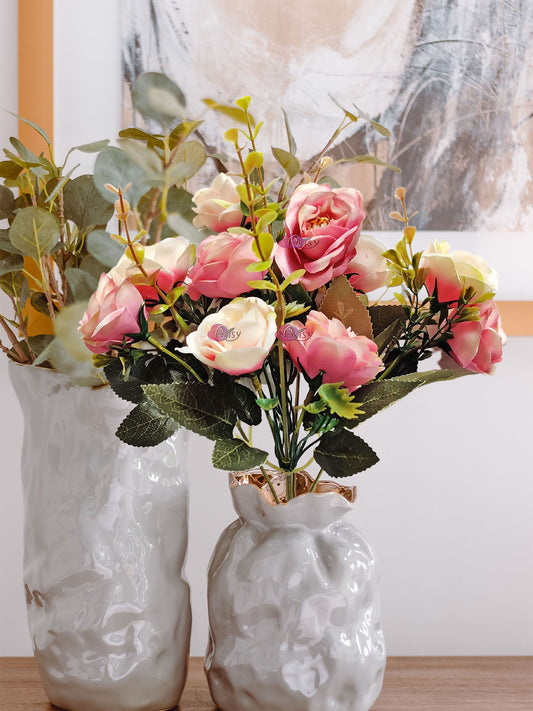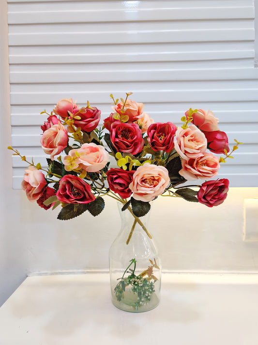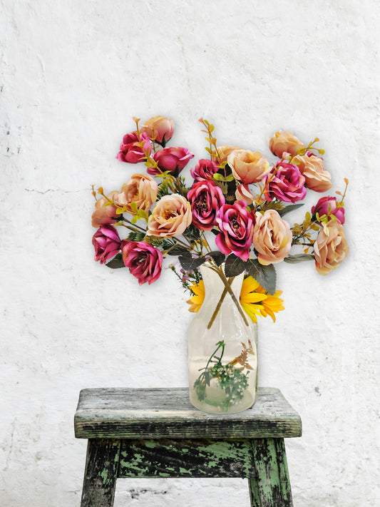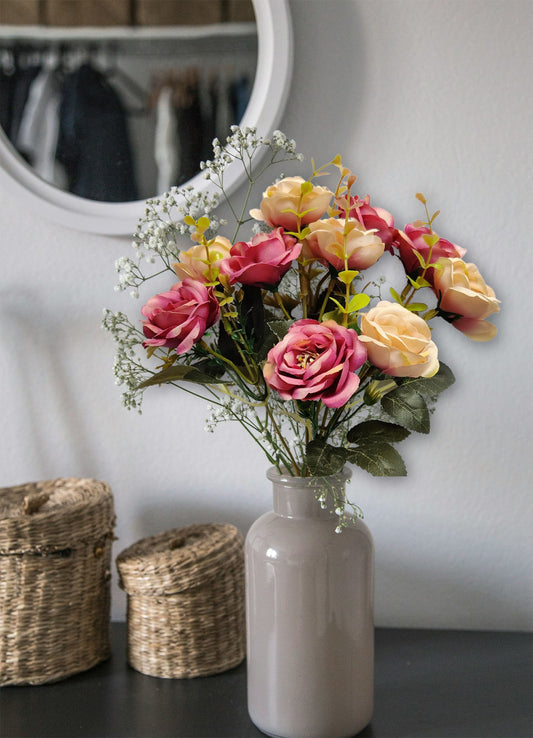 ARTSY® artificial flower for decoration, rose flower bunch, pack of 2 pieces, cream pink
