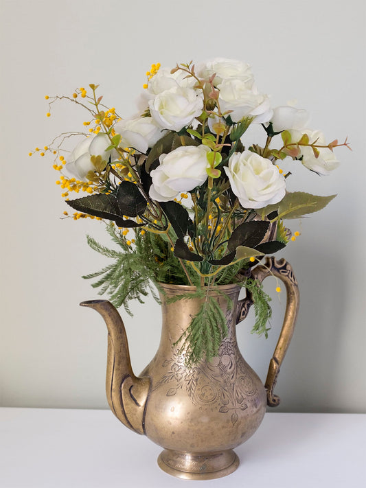 Artificial Flowers for decoration peony rose flower bunch for vase/pot, home/office decor, gift, artificial plant, Craft, Without Vase, Pack of 1 piece, white