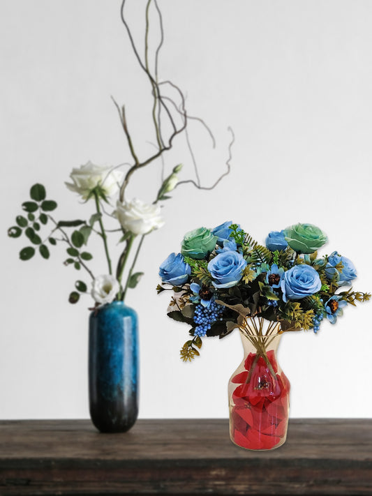 Enchanting Elegance: Artificial Blue Rose Flower For Vase Filler, Home Decoration, DIY craft And Many More, Combo pack of 2 Pieces, Without Vase