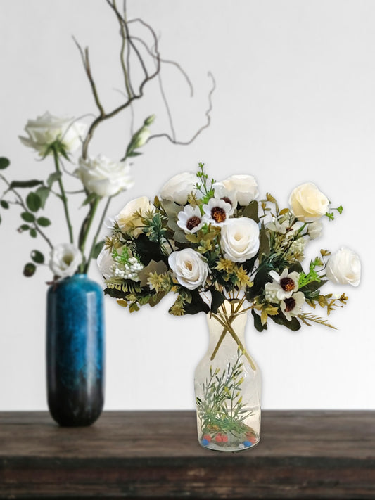 ARTSY® artificial flower for decoration, rose flower bunch, pack of 2 pieces, white