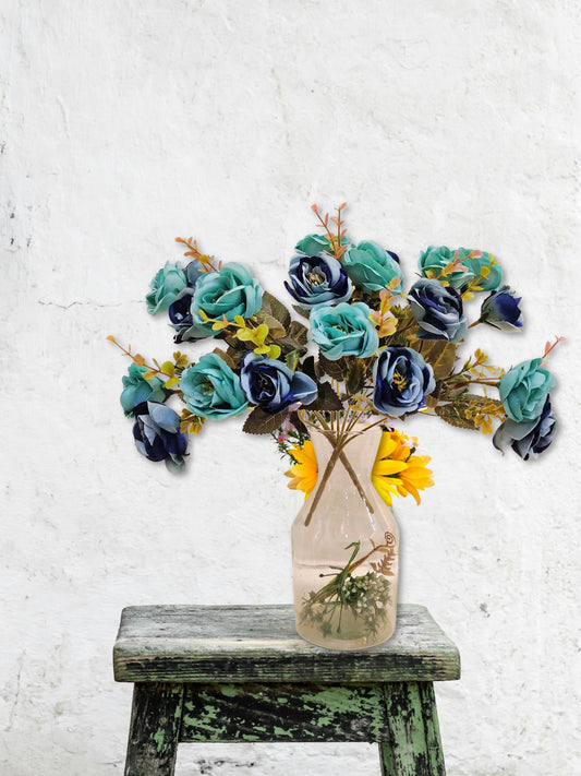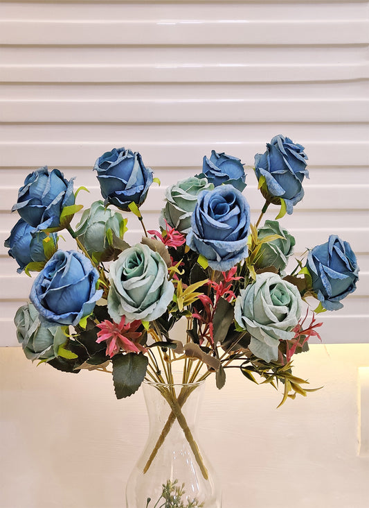 ARTSY® artificial flower for decoration, rose flower bunch, pack of 2 pieces, blue