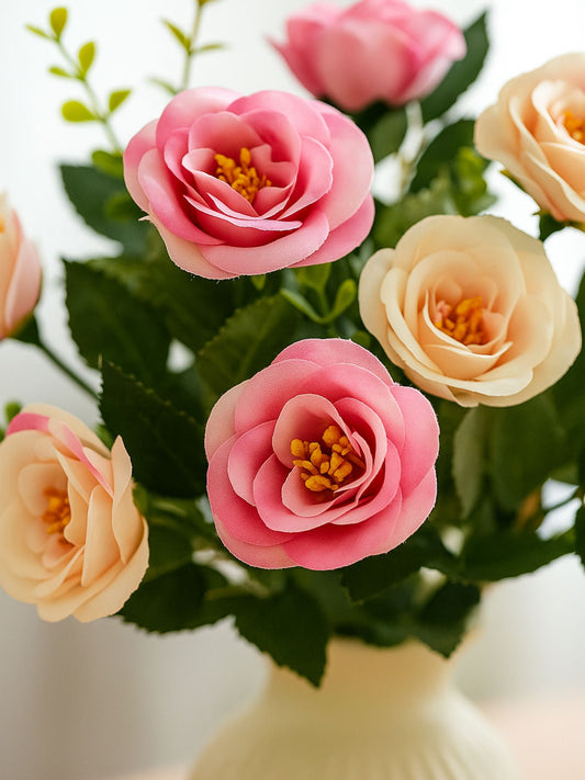 ARTSY® artificial flower for decoration, rose flower bunch, pack of 2 pieces, cream pink