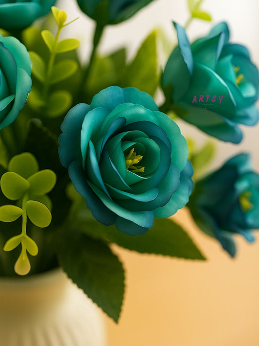 ARTSY® artificial flower for decoration, rose flower bunch, pack of 2 pieces, blue