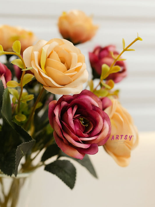 ARTSY Artificial Flower Bouquet (Set of 2) | Rose & Peony Flowers for Home Decor, Living Room, Bedroom, Office, Wedding & Table Decoration