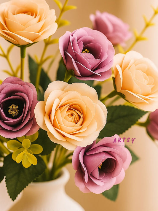 ARTSY® artificial flower for decoration, rose flower bunch, pack of 2 pieces, white purple