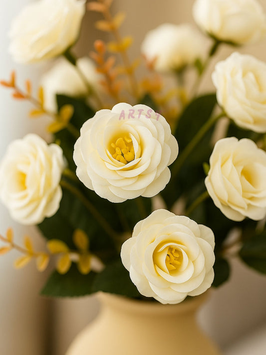 ARTSY® artificial flower for decoration, rose flower bunch, pack of 2 pieces, white