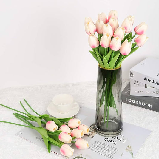 ARTSY® Artificial Tulip Flowers Bunch – Set of 5 Faux Flower Stems | Ideal for Living Room, Centerpiece, Gifting, craft, Real Touch Flower Bunch for Vase Decor, Home Styling, Events, Babypink