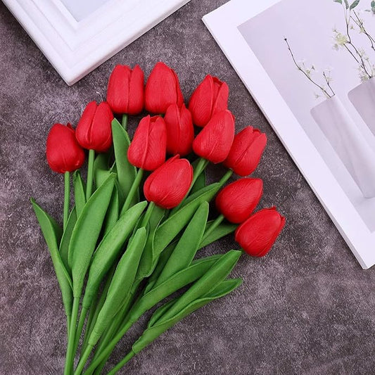 ARTSY® Artificial Tulip Flowers Bunch – Set of 5 Faux Flower Stems | Ideal for Living Room, Centerpiece, Gifting, craft, Real Touch Flower Bunch for Vase Decor, Home Styling, Events, Red