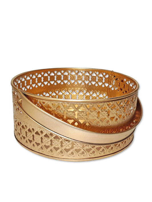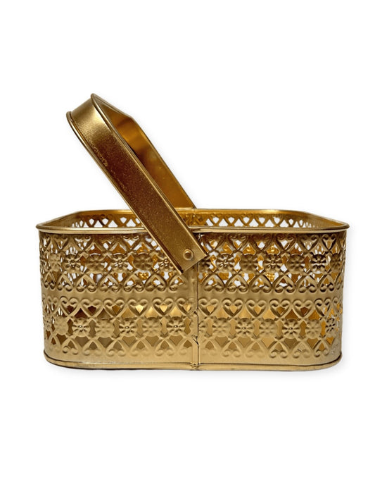 Multipurpose Decorative Metal Basket with Foldabale Handle for pooja storage, organizer, gift, DIY craft, Golden, 1 piece