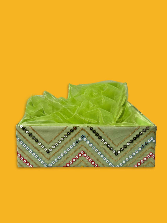 Handcrafted multipurpose Decorative Gift Box/Basket With Fabric Embellishments, Used For Storage organiser, Gift hamper decoration, Green