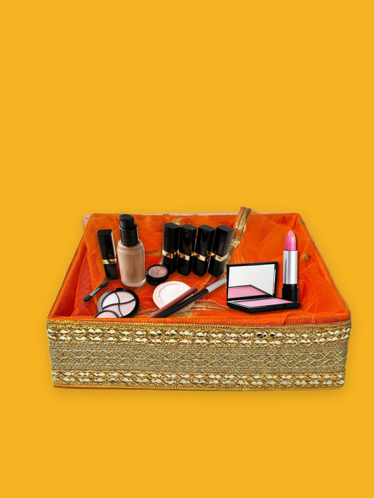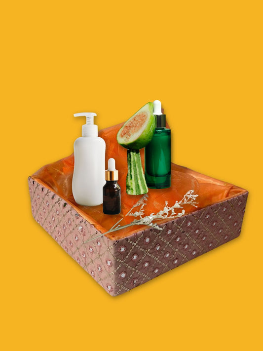 Handcrafted multipurpose Decorative Gift Box/Basket With Fabric Embellishments, Used For Storage organiser, Gift hamper decoration, Orange