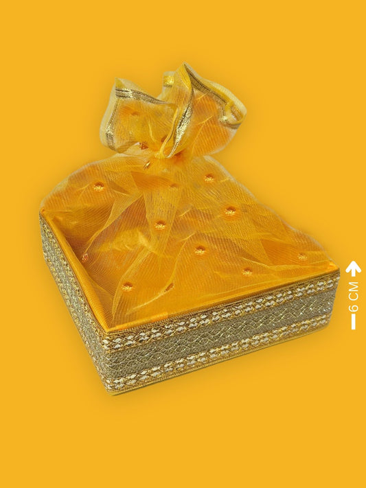 Handcrafted Decorative Gift Box/Basket With Fabric Embellishments, Used For Storage organiser, Gift hamper decoration, multipurpose, Yellow
