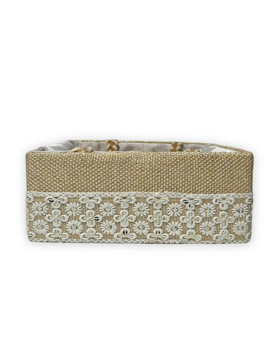 Handcrafted Decorative Gift Box/Basket With Fabric Embellishments, Used For Storage organiser, Gift hamper decoration, multipurpose, Handle support, Cream