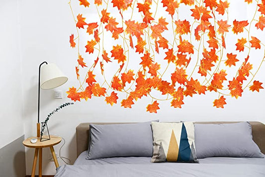 ARTSY® Artificial hanging flowers for wall decoration, artificial plants for home decor, maple plant leaves for decoration, office decor, craft, gifting, pack of 6 pieces, 7 feet long each, orange