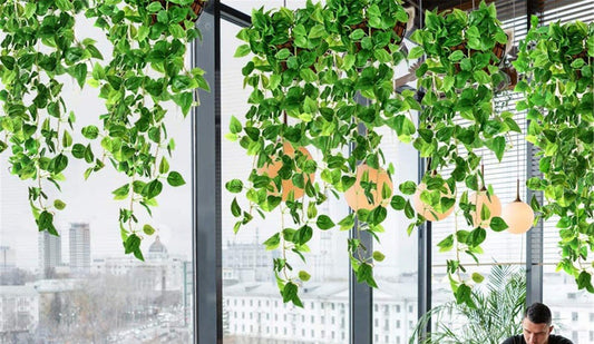 ARTSY® Artificial hanging flowers for wall decoration, artificial plants for home decor, money plant leaves for decoration, office decor, craft, gifting, pack of 6 pieces, 7 feet long each, green