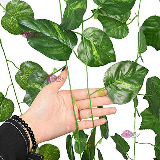 ARTSY® Artificial hanging flowers for wall decoration, artificial plants for home decor, money plant leaves for decoration, office decor, craft, gifting, pack of 12 pieces, 7 feet long each, green