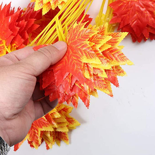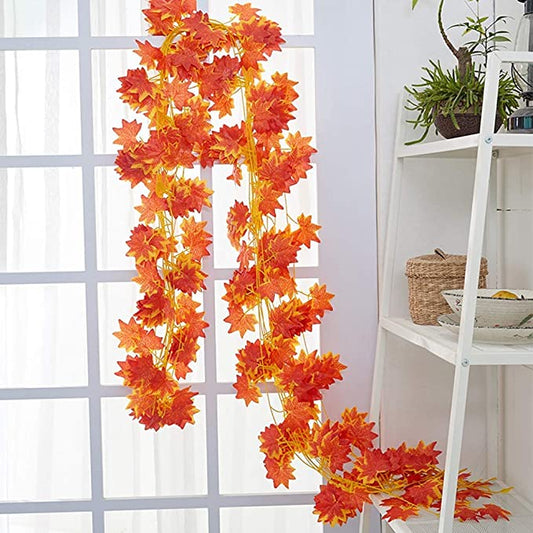 ARTSY® Artificial hanging flowers for wall decoration, artificial plants for home decor, maple plant leaves for decoration, office decor, craft, gifting, pack of 5 pieces, 7 feet long each, orange